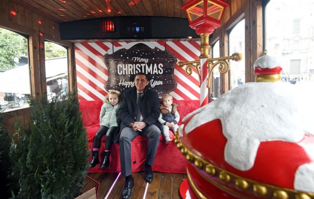 El alcalde José Antonio Serrano ha presentado esta mañana la ‘Estación Polar' que por vez primera llegará a absolutamente todas las pedanías de Murcia. "Desde Corvera hasta Cañada Hermosa, desde Lobosillo hasta Cabezo de Torres, pasando por todas las pedanías del municipio. Hoy parte desde la Plaza Belluga el tren de la Navidad que viajará hasta el norte, sur, este y oeste para llegar a todas las familias murcianas", ha indicado Serrano.