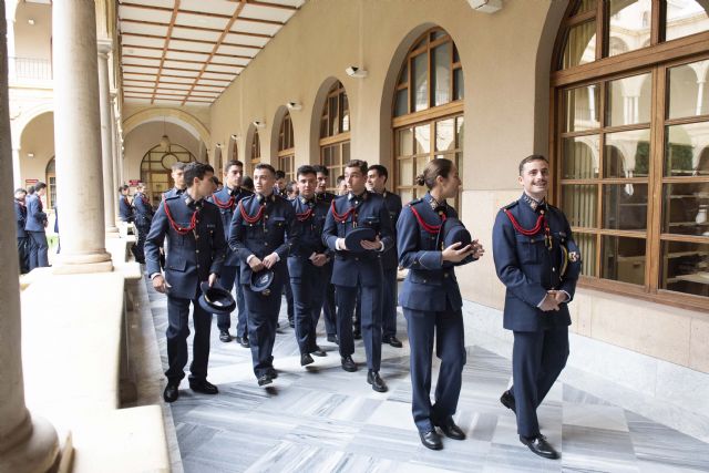La Universidad de Murcia ha recibido este jueves la visita de profesorado y alumnado de tercer curso de la Academia General del Aire, ubicada en San Javier. El rector, José Luján, les ha recibido en un acto que ha tenido lugar en la Galería de Rectores, en la Convalecencia.