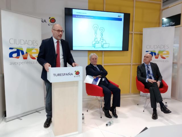 El Concejal de Cultura, Turismo y Deportes del Ayuntamiento de Murcia, Pedro García Rex, ha asistido este miércoles en la Feria Internacional de Turismo de Madrid (FITUR) a la primera asamblea anual de 2023 de la Red de Ciudades AVE. Al término de la sesión se le ha dado la bienvenida a la ciudad de Murcia como próximo miembro de una asociación integrada por cuatro comunidades autónomas (Castilla León, Castilla La Mancha, Cataluña y Andalucía) y por 31 ciudades que son destinos asociados.