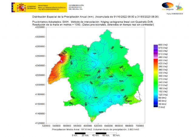 Con todo ello, el volumen de lluvia medio registrado en la cuenca del Segura en lo que va de año hidrológico es de 203 litros por metro cuadrado (l/m2).