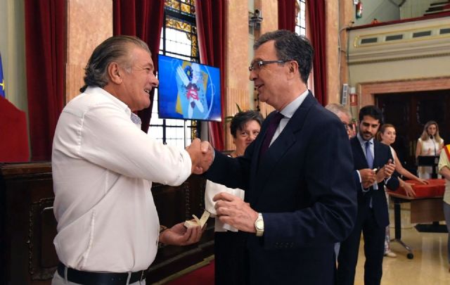 El alcalde de Murcia, José Ballesta, acompañado por el concejal de Cultura e Identidad, Diego Avilés y el concejal de Turismo, Comercio y Consumo, Jesús Pacheco, ha recibido en el Salón de Plenos Ayuntamiento de Murcia a los grupos participantes en el XXVII Certamen Internacional de Tunas ‘Barrio del Carmen'.