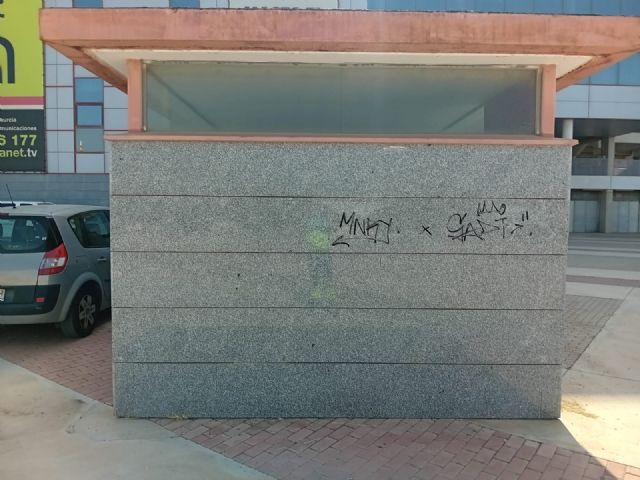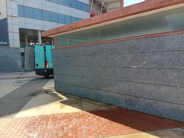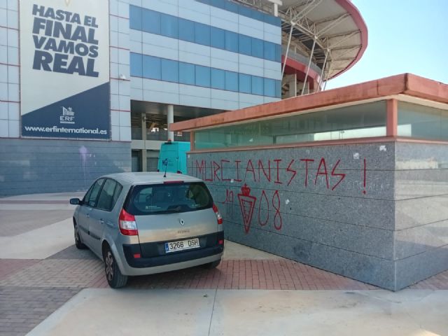 El Ayuntamiento de Murcia, por medio de la Concejalía de Fomento y Patrimonio, que dirige la vicealcaldesa, Rebeca Pérez, ha eliminado las pintadas del perímetro del Estadio Enrique Roca de Murcia.