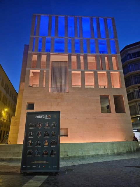Murcia se ha sumado a la celebración del Día de la Declaración de Independencia de Ucrania de la URSS iluminando, anoche, el edificio Moneo con los colores de su bandera, el amarillo y el azul.