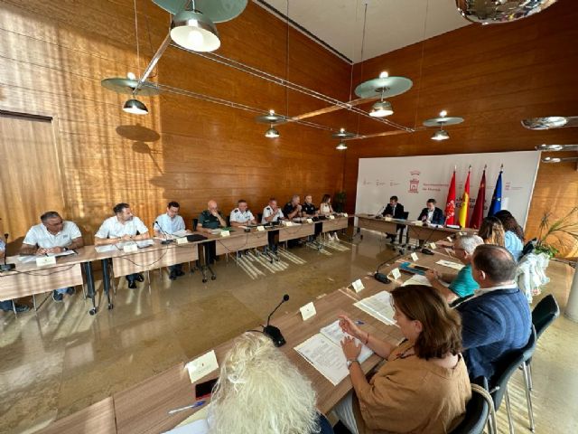 El concejal de Seguridad Ciudadana y Emergencias, Fulgencio Perona, y el delegado del Gobierno en la Región de Murcia, Francisco Jiménez, han presidido esta mañana la Junta Local de Seguridad con motivo de la Feria de Septiembre en Murcia, que arranca el 31 de agosto.