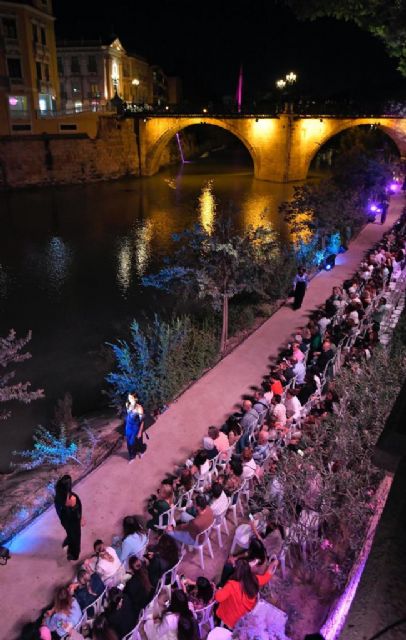 Más de 1.500 asistentes pudieron disfrutar a pie de río de los últimos diseños del murciano, quien aprovechó la belleza del paseo fluvial iluminado por los focos para desvelar el secreto que ha guardado durante las últimas semanas, los diseños de su última colección.