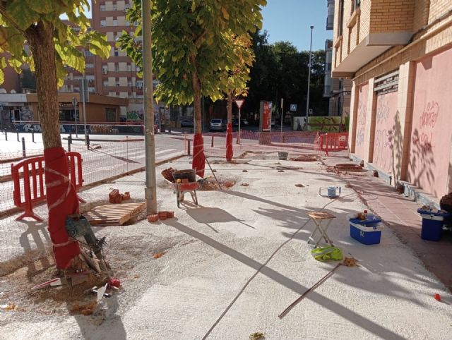 El Ayuntamiento de Murcia, a través de la Concejalía de Fomento y Patrimonio, que dirige la edil Rebeca Pérez, está ejecutando los trabajos para la renovación de la acera en la plaza Santoña de la capital regional. Esta obra evitará el encharcamiento de agua que se producía en la zona.