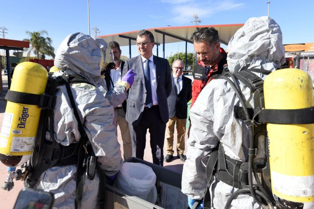 El alcalde de Murcia, José Ballesta, acompañado por el concejal de Seguridad Ciudadana y Emergencias, Fulgencio Perona, y la concejal de Talento Joven y Espacios Públicos, Sofía López - Briones, ha asistido, esta mañana, a la clausura del curso internacional de respuesta a emergencias con tóxicos industriales en entornos no convencionales.