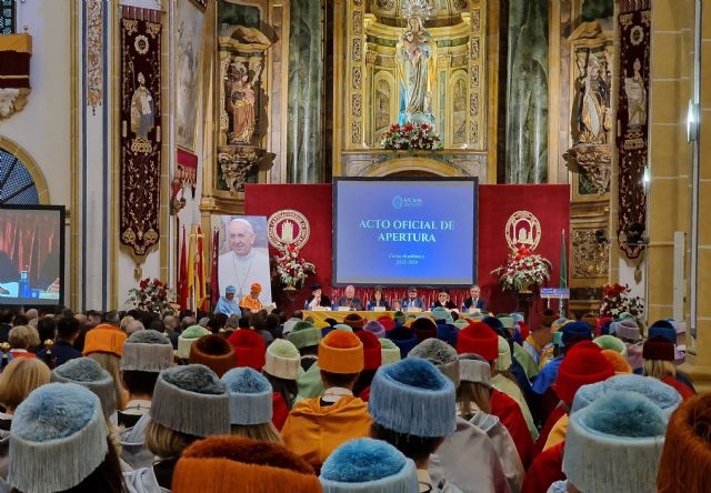 María Dolores García, en su primer Acto Inaugural como presidenta de la UCAM, ha recordado los principios de la institución, "comprometida en formar a las nuevas generaciones; no solo en lograr grandes profesionales, sino en transmitir a los jóvenes los valores que emanan del Humanismo Cristiano y en facilitar el encuentro con Cristo".