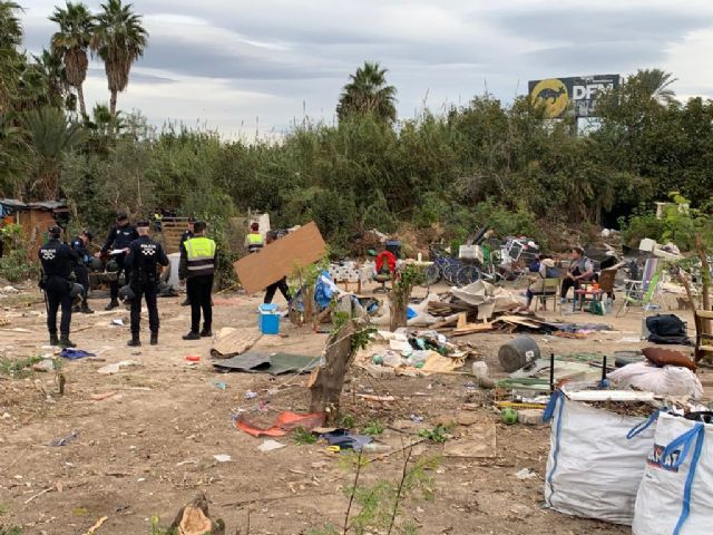 Los servicios municipales de Urbanismo, SEMAS (Servicio de Emergencia Móvil y Atención Social) y Policía Local de Murcia, apoyados por Policía Nacional, han intervenido este martes a primera hora de la mañana para desalojar el poblado chabolista que se había formado en el entorno de La Fica y que ha ido creciendo en los últimos años.