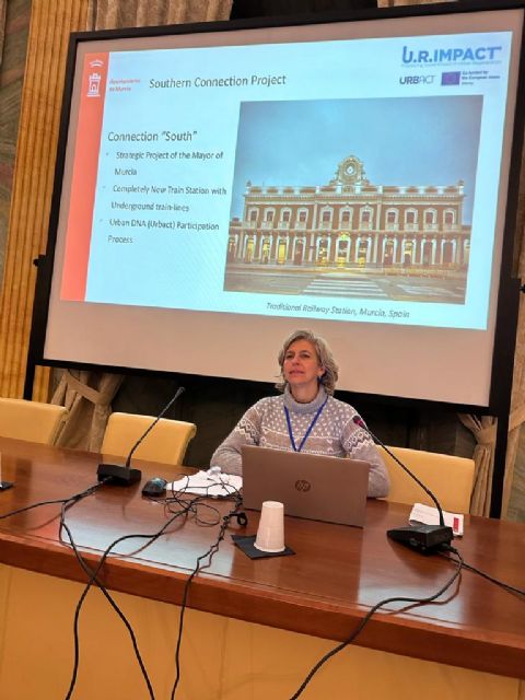 La edil ha expuesto en este foro internacional el proceso participativo que llevó a cabo el Ayuntamiento de Murcia para el proyecto estratégico Conexión Sur, cuyo objetivo es la integración urbana del espacio ganado tras el soterramiento de las vías del ferrocarril.