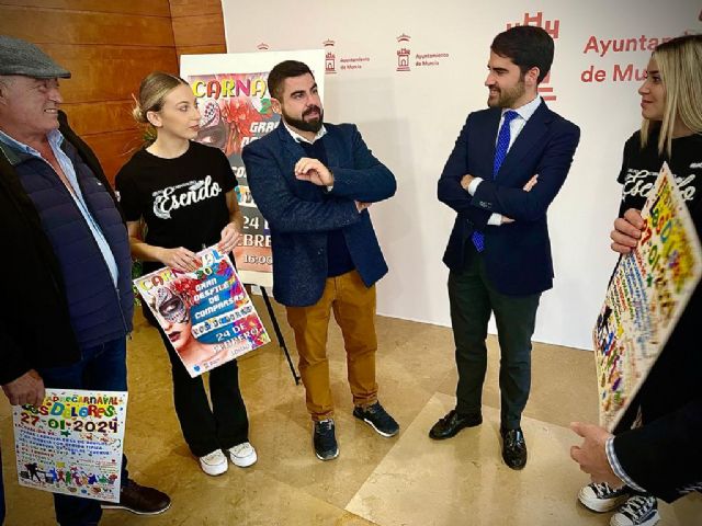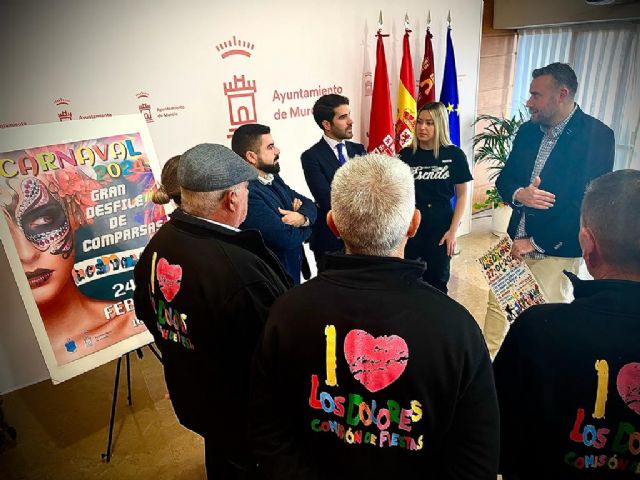 El concejal de Cultura e Identidad, Diego Avilés, ha presentado esta mañana junto con el Presidente de la Junta Municipal de Los Dolores, Ismael Gálvez, miembros de la comisión de fiestas, y la comparsa ‘Essendo’, el cartel y la programación de los carnavales de la pedanía.