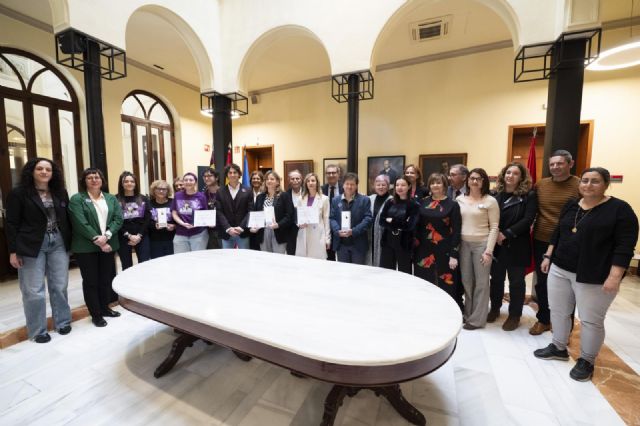 La profesora María del Carmen López Aniorte, catedrática del Departamento de Derecho del Trabajo y la Seguridad Social, y la profesora Gloria Alarcón García, del Departamento de Ciencia Política, Antropología Social y Hacienda pública, han sido las galardonadas con este reconocimiento por su trayectoria en defensa de los derechos de las mujeres. Además, también se ha concedido el distintivo al Departamento de Sociología de la Universidad de Murcia, que han recogido Gaspar Brändle, director del Departamento, y las profesoras Isabel Cutillas, Elena Gadea y Marta Latorre.