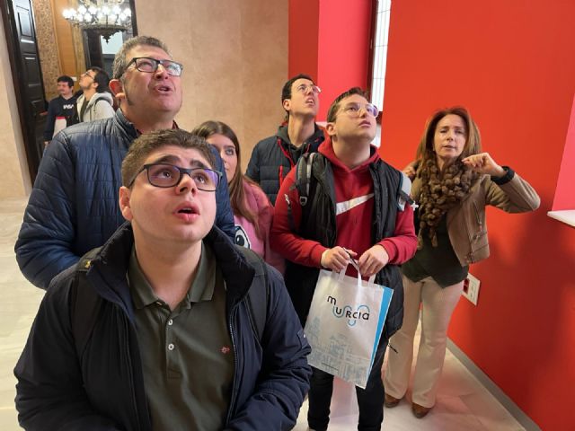 Un total de 13 alumnos de Formación Profesional con discapacidad intelectual del instituto de educación secundaria Aljada de Puente Tocinos han visitado hoy el Salón de Plenos y la Sala de Corregidores del Ayuntamiento de Murcia.