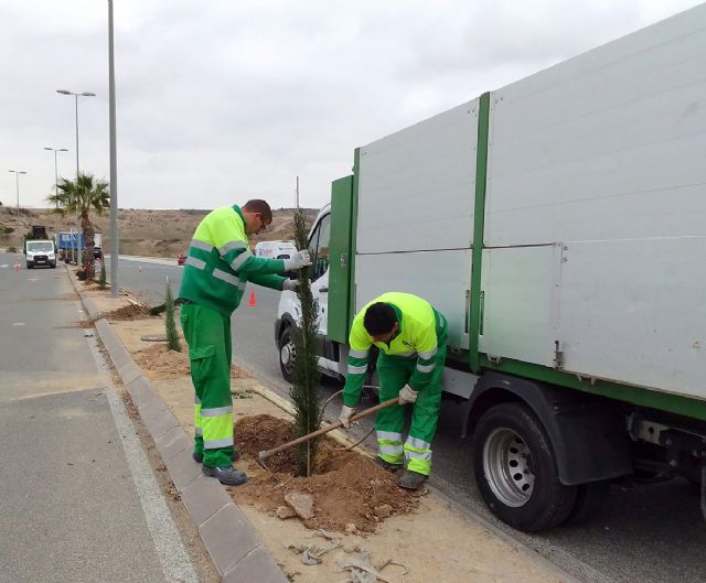 El Ayuntamiento planta 55 nuevos cipreses para embellecer las medianas de la zona norte
