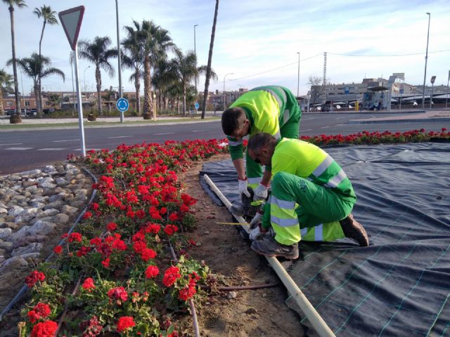 "Tras las obras de movilidad acometidas en el anterior mandato, la rotonda se quedó vacía y necesitaba una reforma en profundidad como la que hemos acometido. En primer lugar, hemos colocado riego automático para ahorrar el máximo de agua y reducir también el trabajo que conlleva mantener un espacio así y se han plantado más de 2.000 geranios en el borde exterior de la isleta, a lo que se han sumado una decena de arbustos de gran porte, dos grupos de ficas, yucas y pequeñas palmeras", ha explicado el edil José Guillén.