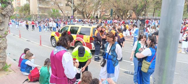 En el dispositivo sanitario participan personal y medios materiales de la Gerencia de Urgencias y Emergencias Sanitarias 061, Cruz Roja y Protección Civil del Ayuntamiento de Murcia.