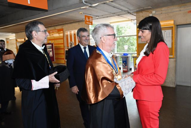 La Universidad de Murcia ha dado esta mañana la bienvenida a su claustro de honor a Mateo Valero Cortés, director del Barcelona Supercomputing Center- Centro Nacional de Computación- y referente mundial en la investigación sobre arquitectura de computadores y diseño de supercomputadores más eficientes y capaces. Esta investidura, aprobada por el Claustro de la UMU a propuesta de la Facultad de Informática, quiere reconocer la decisiva influencia que Valero Cortés, catedrático de la Universitat Politècnica de Catalunya, ha tenido en el diseño y la ingeniería de partes importantes de los procesadores empleados actualmente en diversos ámbitos, que van desde la computación móvil (teléfonos inteligentes) hasta los supercomputadores más rápidos del mundo, pasando por los usados en computadores personales y videoconsolas; procesadores que constituyen el núcleo de cualquier sistema de computación, ya que están encargados de la ejecución de los programas. El solemne acto de investidura ha tenido lugar en el salón de actos de la Facultad de Economía y Empresa, en el Campus de Espinardo, y ha estado presidido por el rector, José Luján. Además, ha contado con la asistencia de la secretaria de Estado de Telecomunicaciones e Infraestructuras Digitales, María González Veracruz, y el consejero de Universidades, Investigación, Medio Ambiente y Mar Menor, Juan María Vázquez.