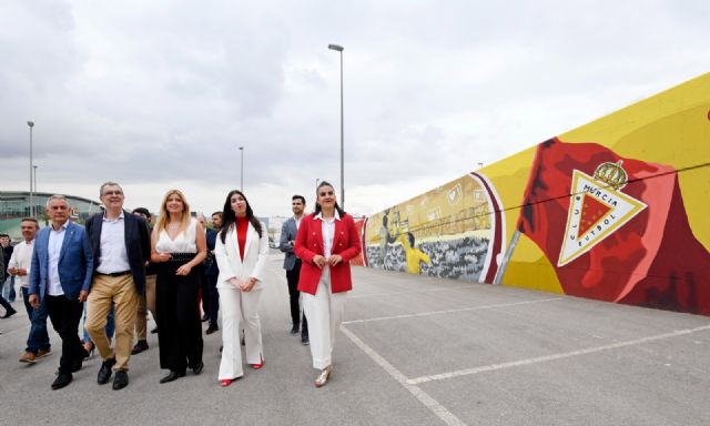 La iniciativa comenzó el pasado verano con el adecentamiento del entorno que realizó el Ayuntamiento de Murcia y que ha culminado con la realización de un gran mural que supone un homenaje al club centenario y a su afición, y que se ha realizado a través del proyecto ‘AficionArte al Real'.