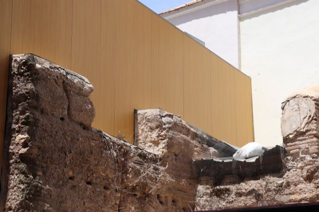 Esta misma semana el monumento protegido como Bien de Interés Cultural (BIC) presentaba un estado de conservación bochornoso, con maleza creciendo sin control, grietas, e incluso con bolsas de basura tiradas encima, denuncian desde HUERMUR.