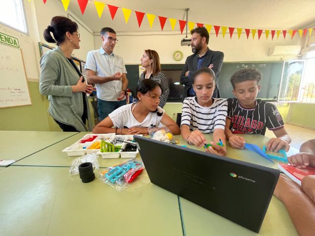 El CEIP Los Rosales de El Palmar ha recibido la visita de la concejal de Educación, Belén López y de la directora general de Aguas de Murcia, Inmaculada Serrano, para comprobar in situ como se desarrolla el programa AQUASTEM en los centros educativos.