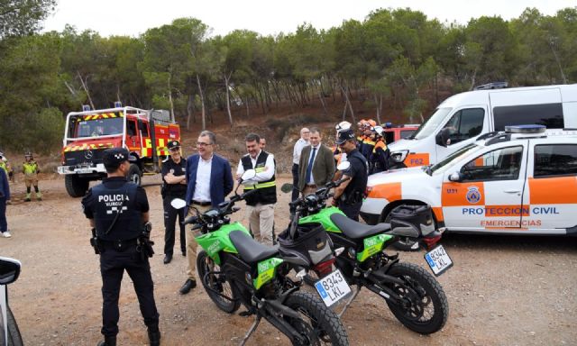 El alcalde de Murcia, acompañado por el concejal de Seguridad Ciudadana y Emergencias, Fulgencio Perona, y el concejal de Pedanías y Vertebración Territorial, Marco Antonio Fernández, ha detallado que este equipo de trabajo estará conformado por 10 agentes de la Patrulla Ecológica de Policía Local (1 subinspector y 9 agentes), 37 efectivos de Bomberos (1 imaginaria, 1 suboficial, 2 sargentos, 5 cabos, 18 bomberos, 8 conductores y 2 operadores) y 16 voluntarios de Protección Civil. Permanecerá en activo, en principio, hasta el próximo 31 de octubre; temporada en las temperaturas en el municipio de Murcia son elevadas y, por tanto, se incrementa el riesgo de incendio forestal.