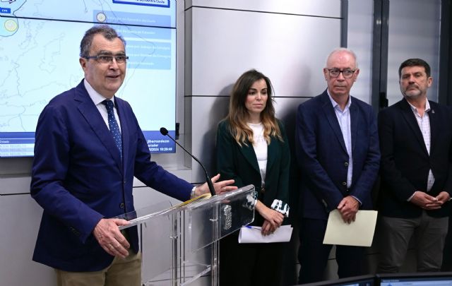 El alcalde de Murcia, José Ballesta, ha presidido esta mañana el comité de crisis con todos los servicios municipales implicados en este episodio de lluvias y después ha comparecido en la sede de Aguas de Murcia para hacer balance de las incidencias y actuaciones más relevantes realizada.