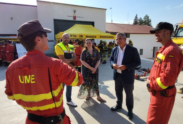 El consejero de Medio Ambiente, Universidades, Investigación y Mar Menor, Juan María Vázquez, visitó a los miembros del III Batallón de Bétera de la UME mientras realizaba un ejercicio de reconocimiento y posicionamiento para la lucha contra incendios forestales, a la vez que profundizaba en el conocimiento del territorio y experiencias de los dispositivos desplegados en la zona, guiados por agentes medioambientales de la Región.