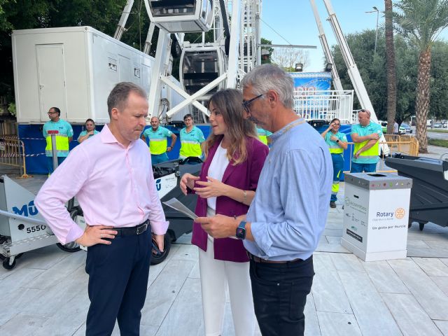 Así lo ha informado en rueda de prensa esta mañana la Vicealcaldesa y concejal de Fomento y Patrimonio, Rebeca Pérez, junto con el director de PreZero, Eduardo Azcona, y el Presidente de Rotary Club Murcia Norte, Sergio Streitenberger, acompañados de operarios de la empresa que realizarán las labores de limpieza durante esta feria.
