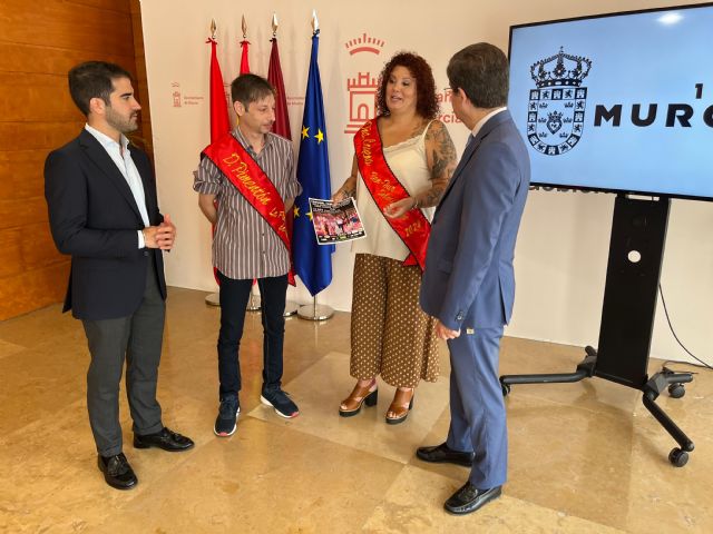 El concejal de Turismo, Comercio y Consumo, Jesús Pacheco, y el concejal de Cultura e Identidad, Diego Avilés, acompañados por Krishna Jesús Alcántara, Don pimentón 2024, y Marisol Tovar, Doña Cayena 2024; han presentado esta mañana la programación oficial del Medio Año Carnavalero de Cabezo de Torres, con el que comienza la cuenta atrás de uno de los eventos más esperados de la pedanía.