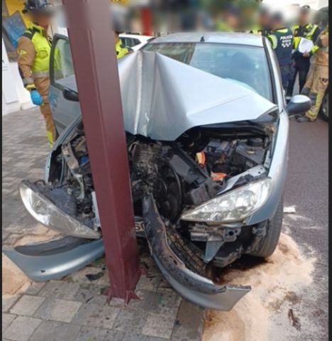 Servicios de emergencia han rescatado, atendido y trasladado al hospital a tres personas, ocupantes de un turismo que ha colisionado contra una farola en Ronda Norte, en el municipio de Murcia.