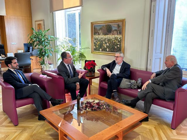 El alcalde de Murcia, José Ballesta, acompañado por el concejal de Cultura e Identidad, Diego Avilés, ha mantenido una reunión con el director del Museo Nacional del Prado, Miguel Falomir, un encuentro en el que también ha estado presente el presidente de la Fundación Cajamurcia, Carlos Egea.