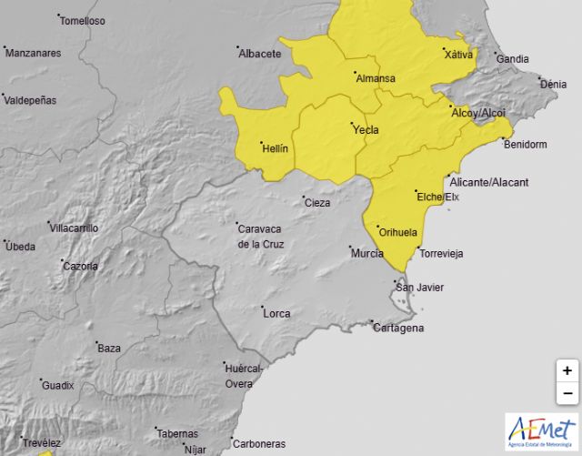 La Agencia Estatal de Meteorología ha emitido aviso de fenómenos meteorológicos adversos de nivel amarillo por viento de hasta 70 km/h mañana sábado, 11 de enero, en la comarca del Altiplano.