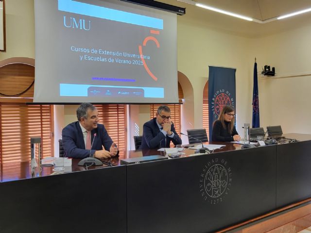 Sobre la nueva oferta, Vázquez destacó la formación en 'Comunicar la cultura y el patrimonio para la promoción sostenible del territorio' en Águilas; 'La huerta de Murcia: tradición y sostenibilidad de un regadío milenario', en Murcia; 'Control y gestión de la carga de entrenamiento en fútbol mediante dispositivos GPS', en San Javier; y 'Terapias Avanzadas: Base científica y uso clínico', en Los Alcázares. De los 52 cursos, 49 son presenciales, dos en modelo híbrido y uno 'online'.