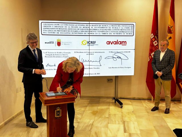 El Ayuntamiento de Murcia, a través de la Concejalía de Gobierno Abierto, Promoción Económica y Empleo, que dirige Mercedes Bernabé, ha firmado un convenio con el Instituto de Crédito y Finanzas de la Región de Murcia (ICREF) y la Sociedad de Garantía Recíproca AVALAM para poner en marcha una nueva línea de financiación destinada a autónomos y pymes asociadas al Centro de Iniciativas Municipales de Murcia (CIMM).