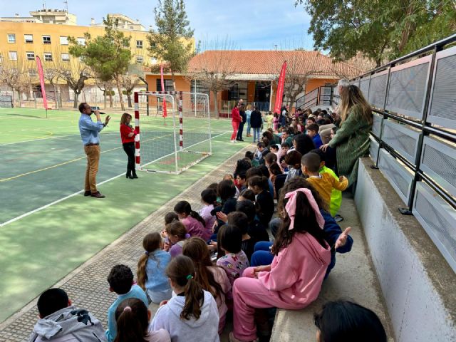 El concejal de Desarrollo Urbano y Ciudad Inteligente, José Guillén, y la edil de Educación y Atención a la Ciudadanía, Belén López, han acompañado a los escolares y docentes en el acto, que ha incluido formación en concienciación medioambiental para los pequeños