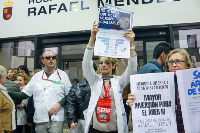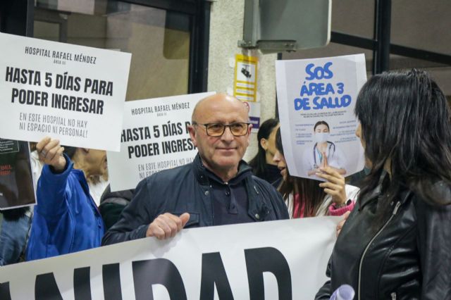 Pedro Sosa y Álvarez-Castellanos claman contra el "deterioro intolerable" de la sanidad pública en la región durante la movilización convocada a las puertas del Hospital Universitario Rafael Méndez de Lorca