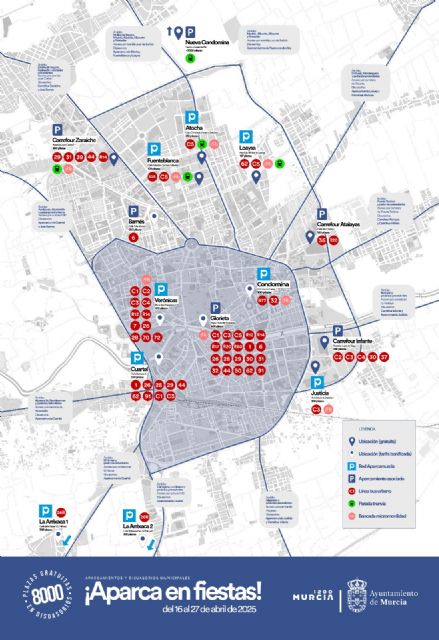 La citada infografía recoge también la correspondencia de estos estacionamientos con el transporte público, permitiendo así que conozcan de antemano como continuar hasta su destino. Con esta iniciativa, se dan a vecinos y visitantes nuevas alternativas para disfrutar de las fiestas, despreocupándose de su vehículo y la búsqueda de aparcamiento, al tiempo que se fomenta el uso del transporte público.