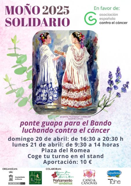Murcia volverá a sacar su lado más solidario en la lucha contra el cáncer con la celebración dl evento ‘Moño Solidario', organizado por la Junta de Distrito Centro- Oeste y la Peña Huertana San Isidro- La Panocha con la colaboración del Ayuntamiento de Murcia. Este domingo y lunes tendrá lugar una nueva edición de este evento solidario en el que un grupo de voluntarias realizarán moños de picaporte huertanos a cambio de una aportación solidaria de 10 euros.
