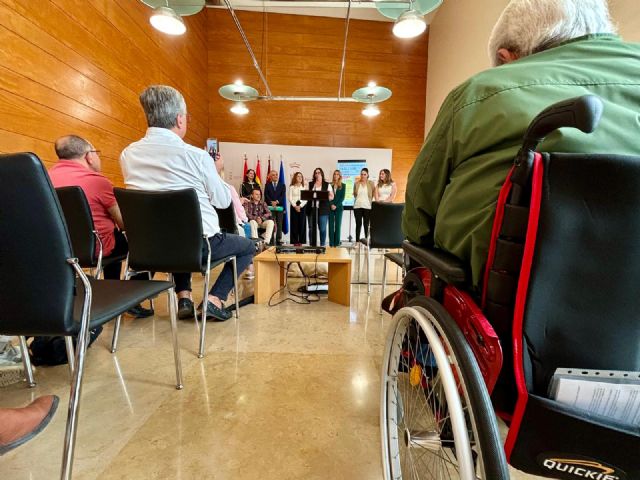 Las concejalas de Mujer, Políticas de Conciliación, Mayores y Discapacidad, Ascensión Carreño, y de Bienestar Social, Familia y Salud, Pilar Torres, han presentado la programación, junto al Director general de Planificación, Farmacia e Investigación Sanitaria, Jesús Cañavate; María Antonia Abril, Directora General de Pensiones, Valoración y Proyectos de inclusión del Instituto Murciano de Acción Social; la presidenta de AMDEM, Paqui Meroño; la responsable de comunicación de AMDEM, Lorena Hernández; y Sara Miras, fisioterapeuta en AMDEM y una de los ponentes de las jornadas, así como otros miembros de la corporación municipal.