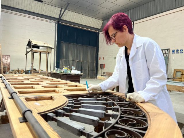 La rehabilitación de la Cárcel Vieja de Murcia, uno de los proyectos patrimoniales más relevantes impulsados por el Equipo de Gobierno del alcalde Ballesta, avanza con paso firme con la recuperación y restauración de más de 90 elementos singulares de edificio, cuyos trabajos encaran la fase final. La vicealcaldesa y concejal de Fomento y Patrimonio, Rebeca Pérez, ha realizado una visita técnica al taller donde se realizan los trabajos, que se encuentran enmarcados en la fase 2.1 del proyecto con el objetivo de conservar, restaurar y proteger la memoria y el valor histórico de este icono del patrimonio murciano.