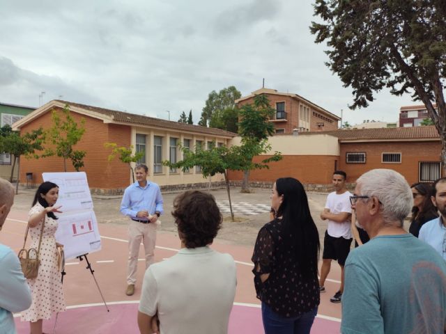 El concejal de Pedanías y Vertebración Territorial, Marco Antonio Fernández y la presidenta de la Junta Municipal de La Alberca, Carolina Pardo, acompañada de los técnicos municipales, han presentado a la dirección del centro y a representantes de los padres, el proyecto de ejecución para la cubrición de la pista deportiva del colegio Virgen de la Fuensanta, gracias a una inversión de 216.162'54 euros.