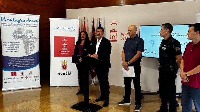 La ONG Azul en Acción, fundada en el seno de la Policía Local de Murcia, emprenderá un nuevo viaje solidario a Senegal el próximo lunes 13 de octubre, donde llevará a cabo una intervención integral en salud ocular y visual que permitirá devolver la vista a más de un millar personas ciegas o con baja visión. Así lo ha informado el concejal de Seguridad Ciudadana y Emergencias, Fulgencio Perona; acompañado por la edil de Talento Joven y Espacios Públicos, Sofía López-Briones; y el presidente de la Azul en Acción, Jesús Franco.