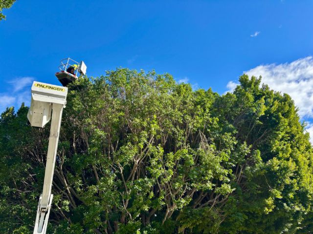 El concejal de Desarrollo Urbano y Ciudad Inteligente, José Guillén, ha supervisado las labores que consisten en el estudio biomecánico de cada árbol, así como actuaciones de descarga de copa y equilibrio del sistema radicular