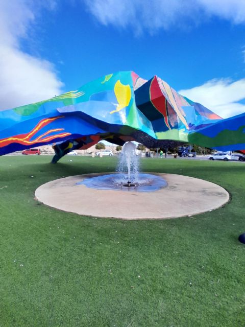 La fuente ornamental ‘Ninfa del Agua', ubicada en la rotonda de Frouida, en el acceso a Murcia y a la pedanía de Churra desde la autovía A-7, vuelve a estar en funcionamiento tras la finalización de los trabajos de suministro, instalación y puesta en marcha de los equipos hidráulicos y de iluminación.