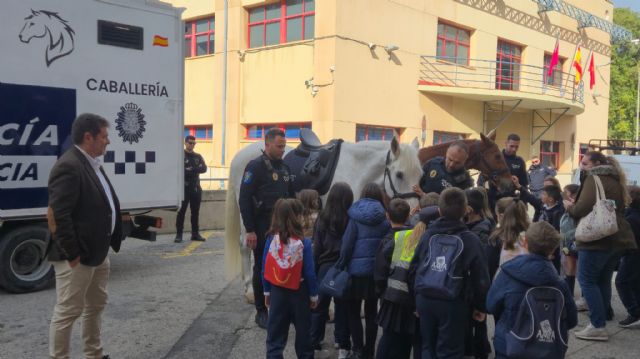 El concejal de Seguridad Ciudadana y Emergencias del Ayuntamiento de Murcia, Fulgencio Perona, ha acompañado esta mañana a los alumnos de Tercero de Primaria del Colegio Cristo Crucificado ‘Villa Pilar' durante una visita educativa a la Comisaría de Policía del Infante, una actividad enmarcada en los programas municipales destinados a acercar los servicios de seguridad y emergencias a los más jóvenes.