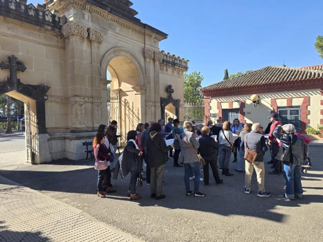 La primera visita del ciclo 2026 de rutas culturales en el Cementerio municipal Nuestro Padre Jesús se ha celebrado esta mañana bajo la temática ‘Élites del siglo XIX', con todas las entradas agotadas desde hace días. Así, los participantes han podido descubrir la historia de personajes ilustres de la sociedad murciana y su papel en la configuración social, económica y cultural de Murcia durante una etapa decisiva de modernización.