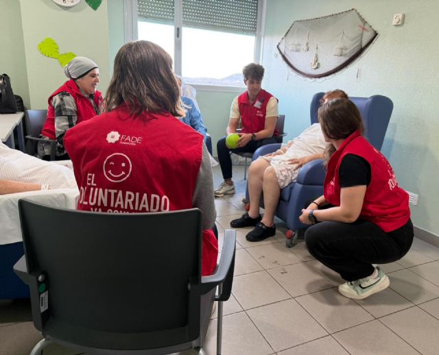 Cartagena 05/02/2026. En la URF del hospital del Rosell, las tardes se llenan de conversación y ejercicio compartido. Lo que podría ser una estancia hospitalaria marcada únicamente por la rehabilitación física se transforma en un espacio de encuentro y motivación gracias al voluntariado en el que colaboran estudiantes del Grado en Fisioterapia de UCAM Cartagena.