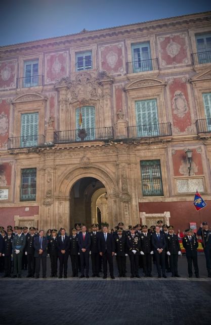 Ortuño asistió hoy al acto institucional de celebración del patrón de la Policía Local de Murcia, donde se refirió a la apuesta del Gobierno regional para reforzar el servicio policial y, de este modo, la seguridad de las personas que viven en la Comunidad, con “una protección más cercana, innovadora y compartida, que fomentará la cooperación entre los ayuntamientos”.