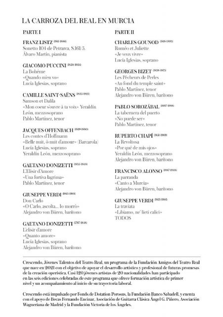 El espectáculo, de acceso gratuito para todos los públicos, contará con la participación de jóvenes talentos del programa ‘Crescendo, Jóvenes Talentos del Teatro Real', impulsado por la Fundación Amigos del Teatro Real para apoyar la formación y proyección profesional de nuevos intérpretes de la lírica.