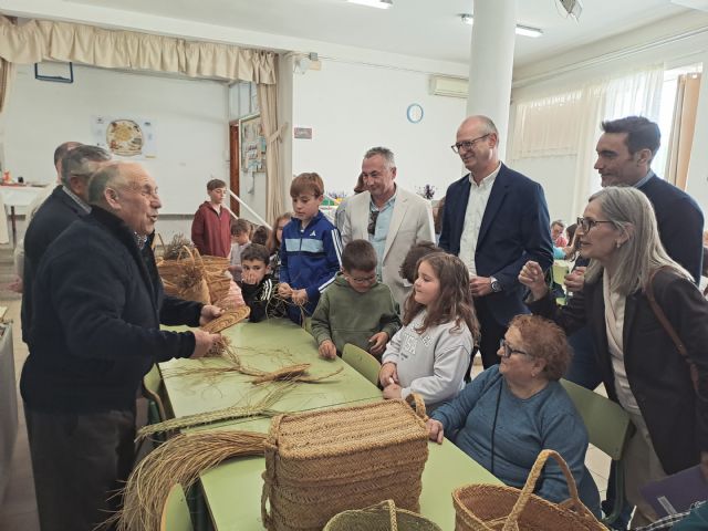 Asimismo, el consejero conoció el proyecto 'Tradiciones, identidad y raíces', que desarrolla el centro junto con la Escuela de Mayores de El Sabinar y el Calar de la Santa, con la que organizan talleres intergeneracionales de ganchillo, esparto y robótica.